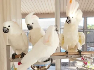 Cockatoos for sale are captivating parrots renowned for their intelligence, sociable nature, and distinctive crests. Native to Australia and nearby regions, they are popular pets due to their vibrant personalities and strong bonding abilities. Common types include the Umbrella Cockatoo, characterized by its distinctive white plumage and fan-shaped crest, and the Moluccan Cockatoo, admired for its striking peachy-pink feathers and affectionate demeanor. The Sulphur-Crested Cockatoo stands out with its bright yellow crest and energetic charm, while the Goffin’s Cockatoo is a smaller, playful species with a curious nature. The Rose-Breasted Cockatoo, or Galah Cockatoos, is beloved for its stunning pink and grey coloration and gentle temperament. Cockatoos thrive with social interaction, mental stimulation, and dedicated care, often living 40-70 years as cherished companions.